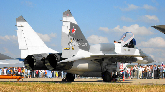 お隣さんはMiG-29SMTかな。従来のMiG-29と比べると背中が盛り上がってますよね。