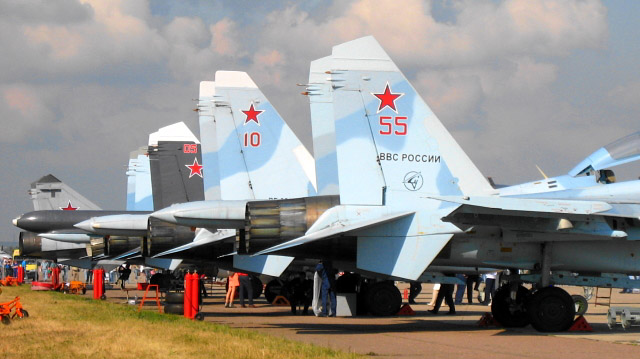 そのあとにこれを見るとすごいスマートに見えちゃいます、Su-30。米海軍がライノ花盛りのように、ロシア空軍はフランカー花盛りに見えますな。