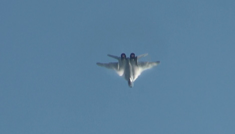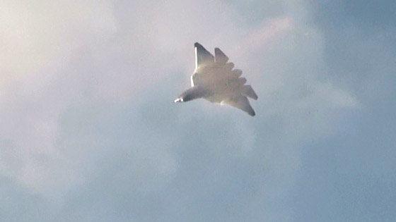 するすると力強く上昇していきます、PAK-FA。今回は昨年のMAKSのような機動飛行ではありませんでしたが、姿を見せてくれただけでも充分です。どうぞ、ロシア製ステルス戦闘機の動画もご覧になってくださいませ。
