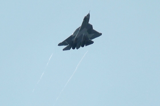 うっすらとベイパーを発生させながら…PAK-FAの主翼の形って特徴的ですね☆