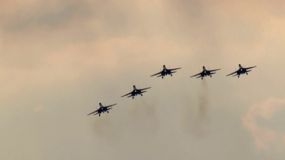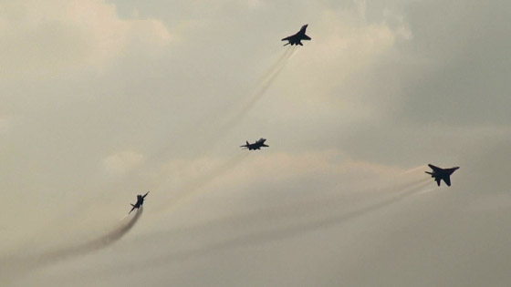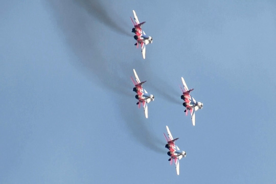 ストリジィは本来6機、ロシアンナイツも6機(最近はずっと5機)ですが、混成になると若干違ってくるようですね。ストリジィ、4機だけ参加です。