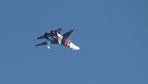 機体が大きいのでできるだけ密集した隊形にしないとこういった編隊ロールでは内側の機体と外側の機体の運動量の差が大きくなりすぎるのでしょう。いやまあほんと、こんな巨大なフランカーでよく編隊ロールなんかやりますね;恐るべし、ロシア;;