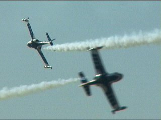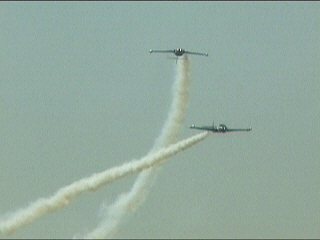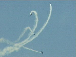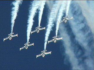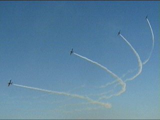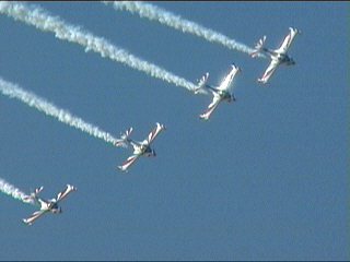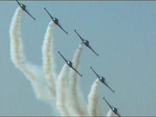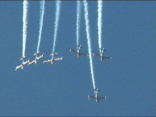 トレイルでロールを開始した編隊がロールの最後にはエシュロンに!こんなロールの苦手そうな機体でもバッチリやってくれます。課目名はトレイルロール。