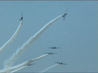 最後はデルタループから雄大に散開しました!そしてこの後、会場正面通過と同時に3機ずつ左右にブレイク、着陸となりました!初めて見たブラックイーグルス、ほんとうに良かったです!かなり小回りの利く機体らしく、次から次へと流れるように演技をこなしていくとてもテンポのいいフライト、連続ロール系など苦手課目はうまく隠して得意分野を前面に押し出すうまい構成、各国のいいところを取り入れた内容、研究成果が良く現れてることが伺える素晴らしいフライトでした。ほんと、近い内に来日が実現したらいいですね!絶対見に行っちゃいます♪
