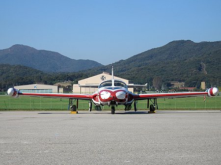 あ、さっそく出ましたA-37!韓国空軍アクロバット飛行チーム、ブラックイーグルスです♪機首の赤い曲線がちょっと素敵。