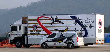 たくさん並んでます;;ブラックイーグルスは8機で飛びます。今回は、T-50単機でのデモとしてのフライトもありました。