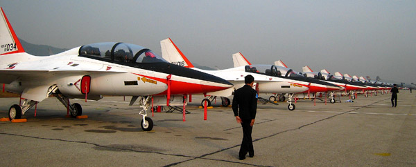 そのT-50、韓国の自信作です。最近の練習機の中では最高レベルの機体ではないでしょうか。M-346とかL-15とかとはまたちょっとイメージが違うんだよなあ。