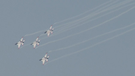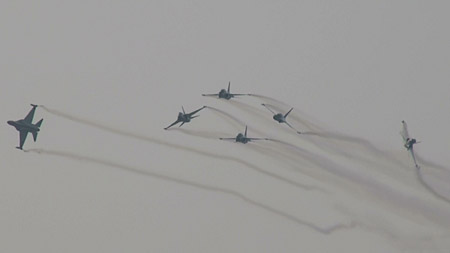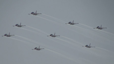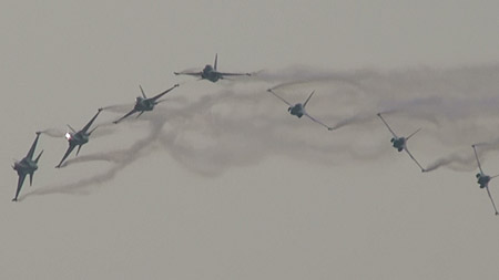 大編隊での演技の後に、それぞれの編隊に分かれる辺りはヨーロピアンな香りもします。ブラックイーグルスは各国にパイロットを積極的に派遣、熱心に研究しているだけあり課目はバラエティに富んでいます。内容も豊かで勉強の結果が良く現れています。