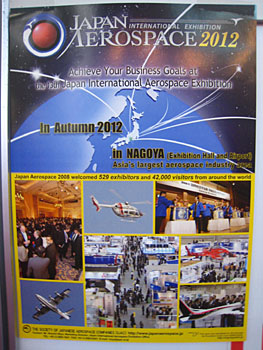 また館内をちょっと。日本での次回の国際航空宇宙展は2012年秋、名古屋で開催です。エキシビジョンホールと飛行場。会場が分かれそうです。飛行場はやっぱ県営名古屋空港かな。