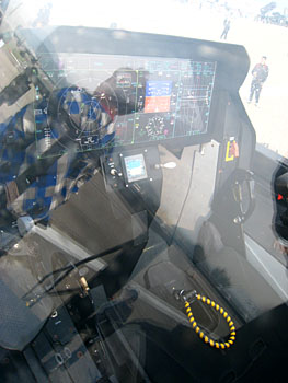 地上にはF-35のモックアップも。よくいろんなトレードショーに出展されてるんですけど、いつもキャノピーが閉じてて、しかも反射率が良すぎでデスネ、うまく中が見えないんだ。でも大きなディスプレイで占められてるのは分かりますよね。今よく言う「グラスコクピット:とはまた別物。全部画面です。