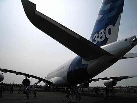A380はエアバス社の機体でした。シンガポール航空が世界で最初に運行を開始しましたので、やっぱり顔見せないとね!