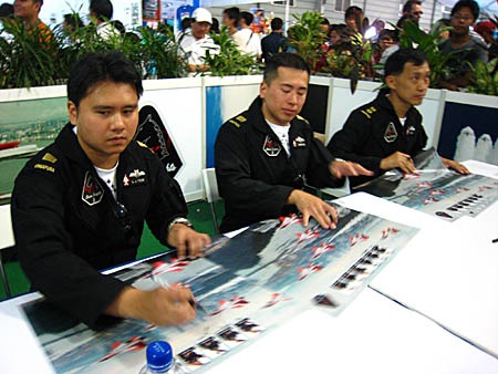 で、こっち!なんか行列があったから並んでみた!ブラックナイツのみなさんがサインしてた!私もなんか貰ったけど、、、何を貰ったっけ??忘れちゃったぞ。なんか、たくさんたくさんグッズをくれました。ただで。太っ腹でした。あとで空軍のブースに行ったらそこでも貰えた。ブラックナイツ仕様の大きめの手帳とか、超豪華でした。