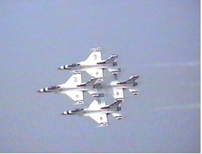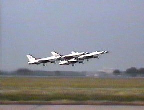 離陸です。フィンガーチップで離陸、すぐにダイアモンドに移行します。それにしても4機ですごい角度で上昇します。恐るべしサンダーバーズ!
