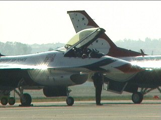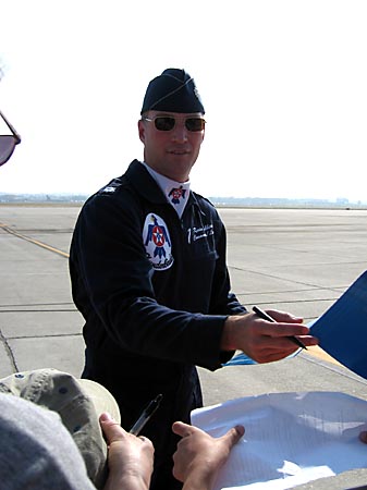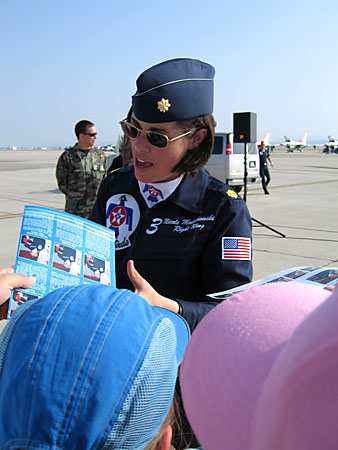 今日のフライトの編隊長、ケビン・J・ロビンスさんです!!実はバーズの司令官でもありますね♪こうやって、フライト後にお客さんみんなと笑顔で接します!これがまた凄いかっこいいんだ!本当にフレンドリーなんですよー。観客一人一人と言葉を交わすんです。パイロット側から子供も大人も分け隔てなく話しかけてくれるんですよ。凄いなあ。
