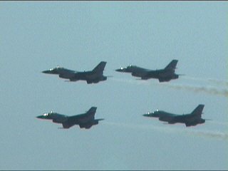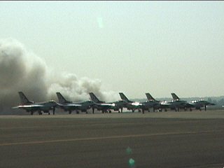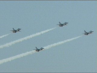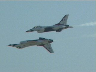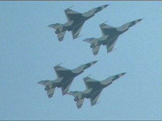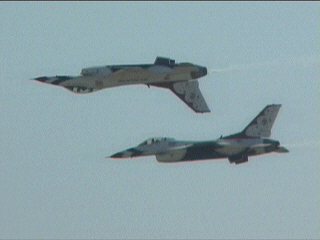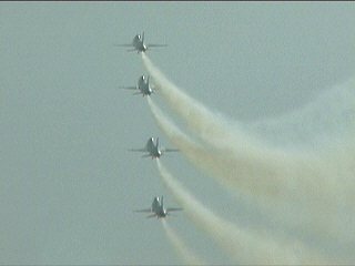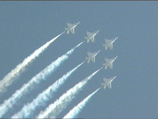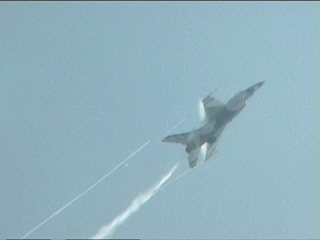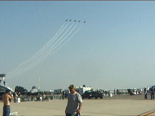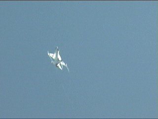 ブルーズではさらに後ろからぶちのめしに来ますがバーズの6番機はお気楽にハイAOAをやって見せます。一昨年ネリスで見たときは脚出しのウィングウォークでした。94三沢ではこれでした。いろいろパターンがあるんですね。