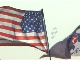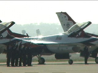 そして大注目、3番機のおねえさんパイロットです!!すごいなあ。ニコルちゃんです。Malachowskiさんだそうです。なんて読むんだ?;ラスベガス出身。ニコルちゃんはあちらでも大人気です。サインを求める人だかりも他の人の約2倍。凄い混んでました。一緒に写真を撮って貰うなど、他のパイロット以上に引っ張りだこです。そっか、今シーズンからデビューなので実際にまだ見た人は少ないんですもんね。同じく、凄くフレンドリーにサインなどに応じています。サングラス外すとほんとに美人さんでした。どっかのアメリカ人が「きゅーと・・・きゅーと」とか言ってた。あぶないぞ;;