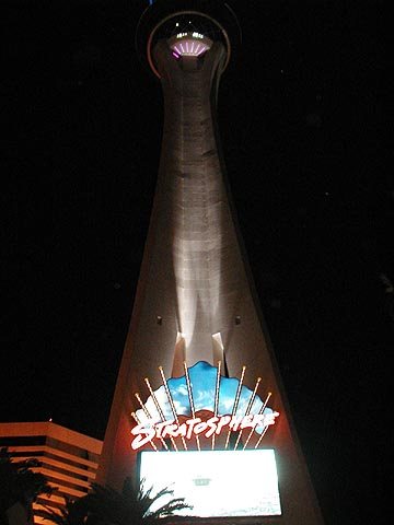 気を取り直してバスを降りた。すぐ目の前に・・・というか、頭上に憧れのストラトスフィアの巨大なタワーが!!(大爆笑)