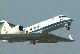 さてさてフライト編です。この飛行機なんでしたっけ・・・C-21だっけ。何度も基地上空を旋回、タッチアンドゴーなども見せました。